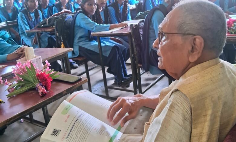 कक्षा 10 वीं की कविता ‘गृह-प्रवेश’ के रचनाकार लोकप्रिय कवि सतीश जायसवाल आज शासकीय हाई स्कूल कपसदा, धरसीवा के छात्र-छात्राओं से मिले