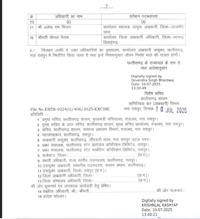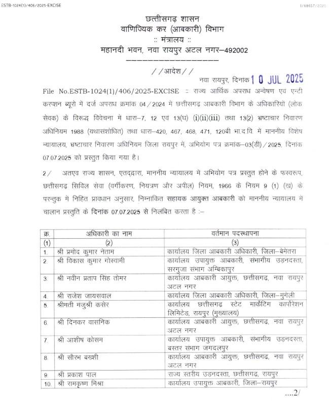 रायपुर, 10 जुलाई 2025// छत्तीसगढ़ के 2174 करोड़ रुपये के शराब घोटाले मामले में राज्य सरकार ने अब तक की सबसे बड़ी कार्रवाई की है। 22 वाणिज्य कर और आबकारी अधिकारियों को निलंबित कर दिया गया है।